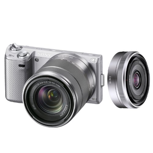 "Sony NEX-5NK/S 16.1MP Compact Interchangeable Lens Digital Camera in Silver with 18-55mm Lens + Sony E-Mount SEL16F28 16mm f/2.8 Wide-Angle Lens" Overview