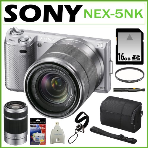 "Sony NEX-5NK/S 16.1MP Compact Interchangeable Lens Digital Camera in Silver with 18-55mm Lens + Sony SEL55210 E-Mount 55-210mm F4.5-6.3 Lens + 16GB SDHC Accessory Kit" Overview